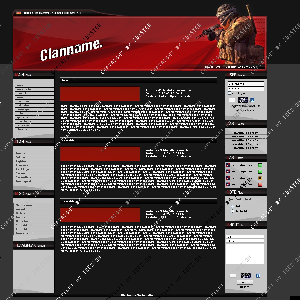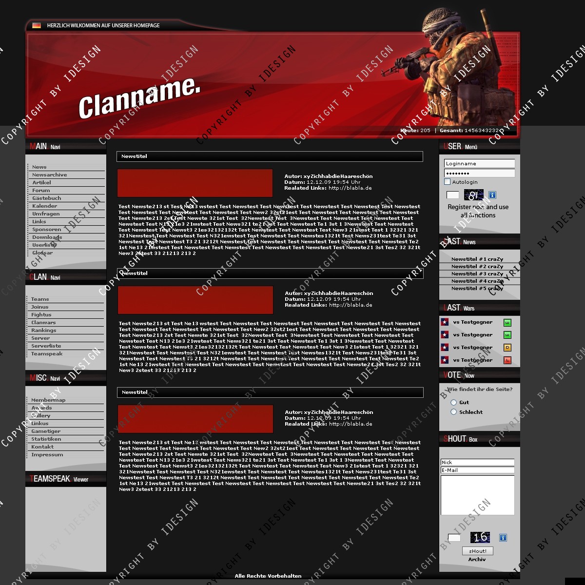 In der psd sind Call of Duty 4, Crysis, Battlefield und Call of Duty 1 Figuren für den Header.