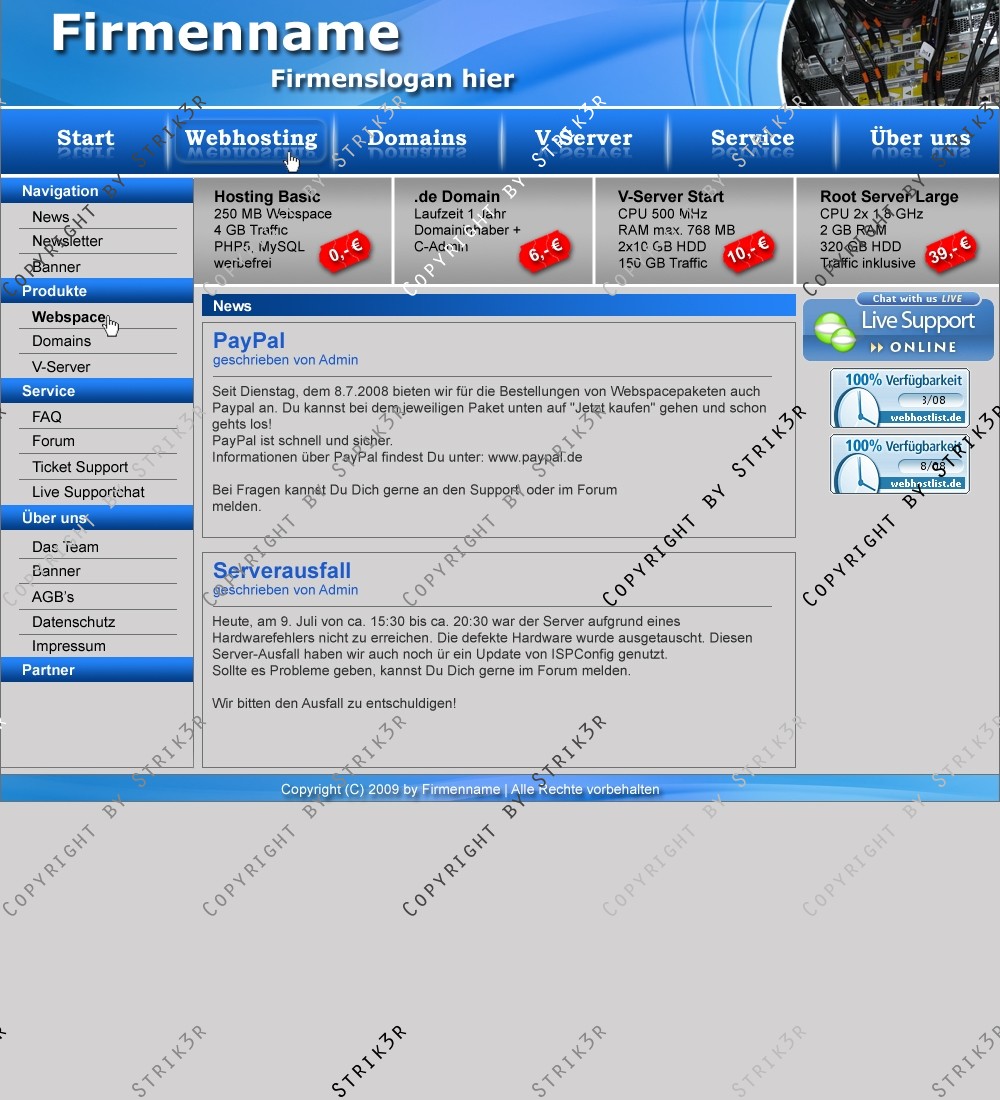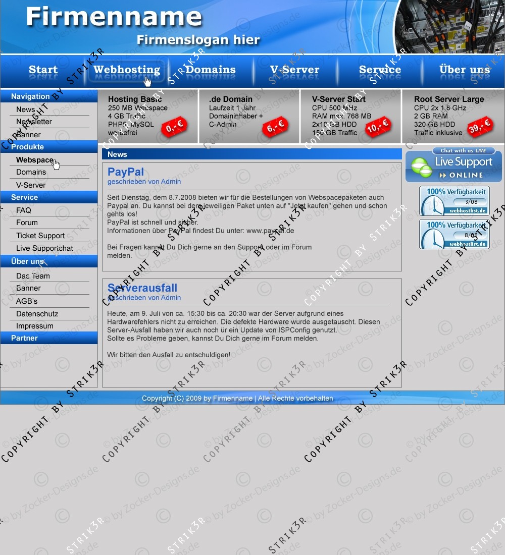 Hinweis: Hierbei handelt es sich nur um das Design, eine Anpassung an ein CMS-System ist nicht im Preis enthalten!
