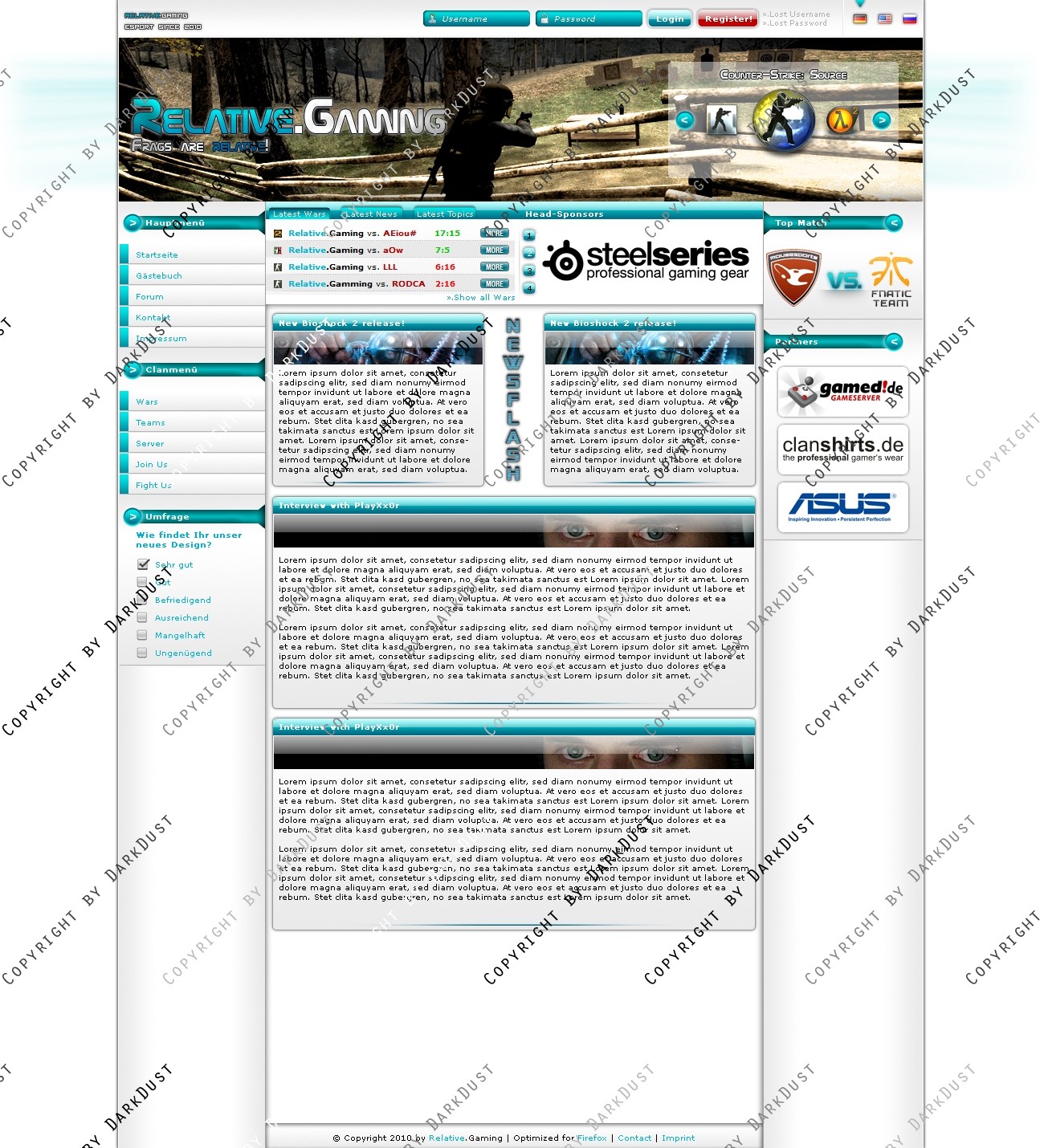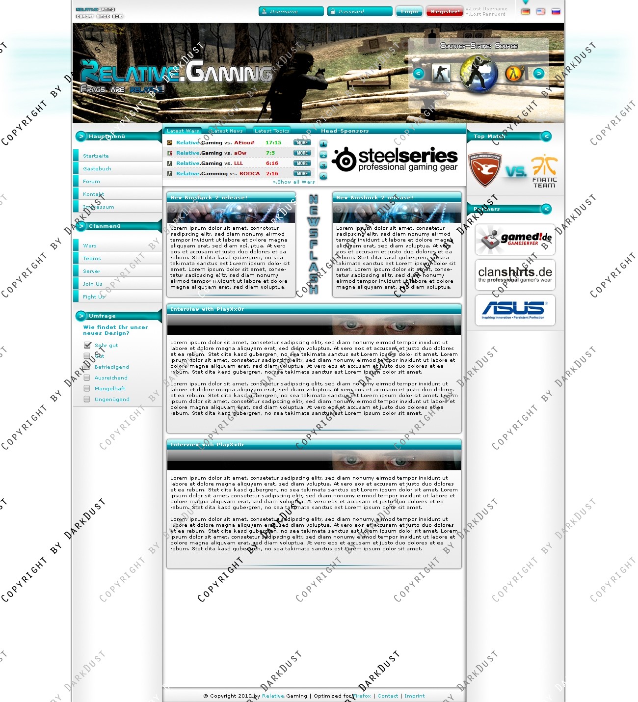 Du hast noch keinen Account auf ClanDesigns.de? Dann kannst du dich hier kostenlos registrieren!