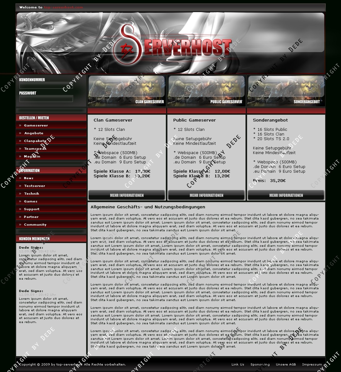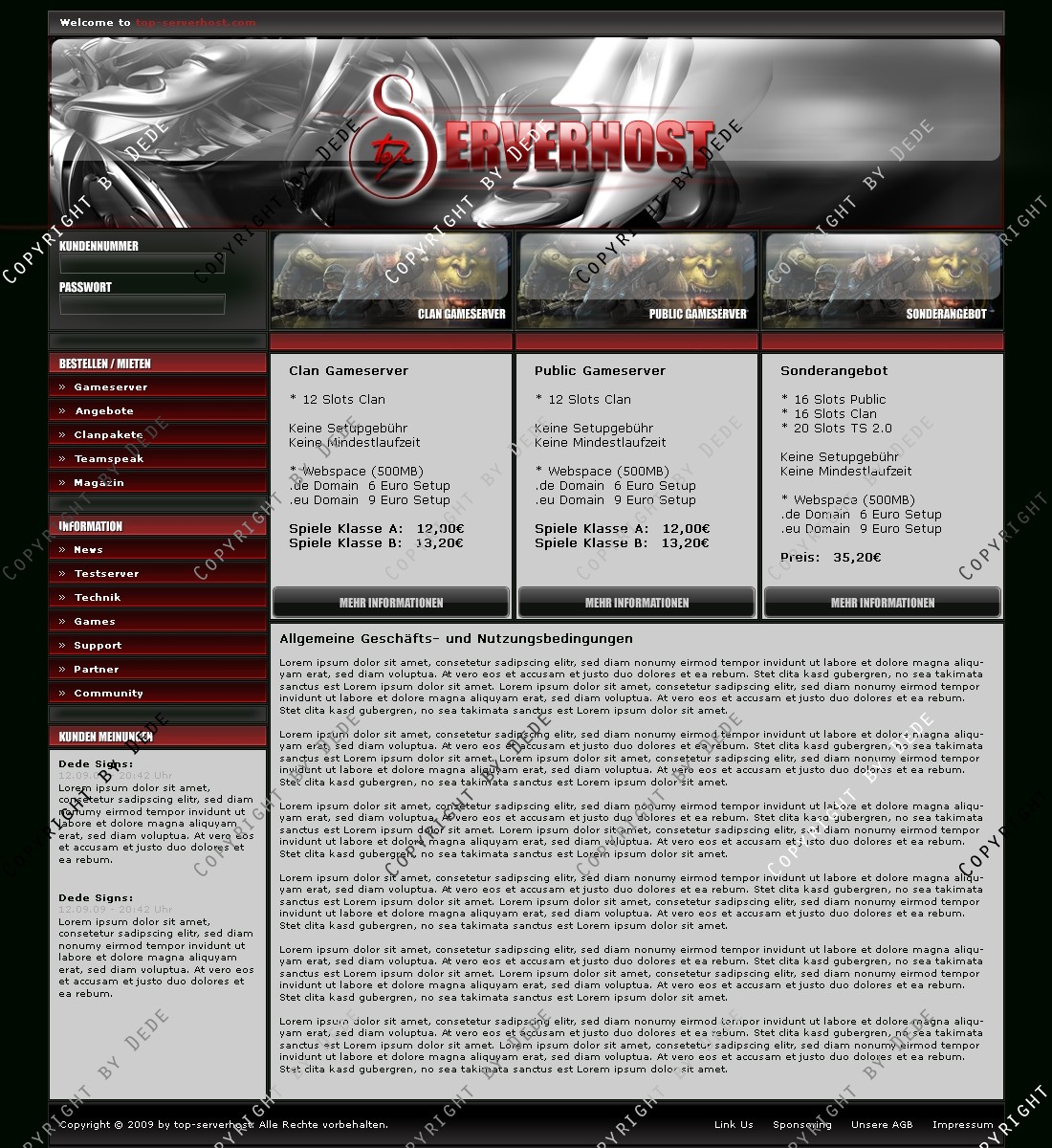 hier biete ich ein Design exklusiv für einen Hostanbieter. Gedacht war das Design für Top Serverhost, leider wurde es nicht angenommen. Im Packet ist zusätzlich noch die Logo psd Datei enthalten.