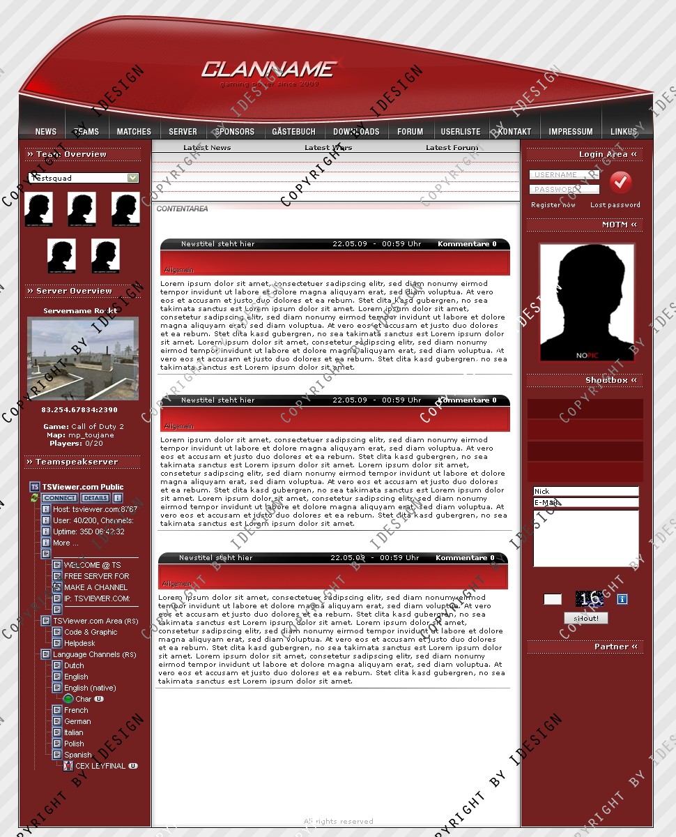 Du hast noch keinen Account auf ClanDesigns.de? Dann kannst du dich hier kostenlos registrieren!