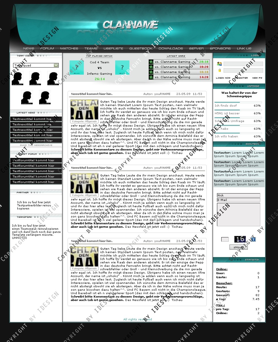 Du hast noch keinen Account auf ClanDesigns.de? Dann kannst du dich hier kostenlos registrieren!