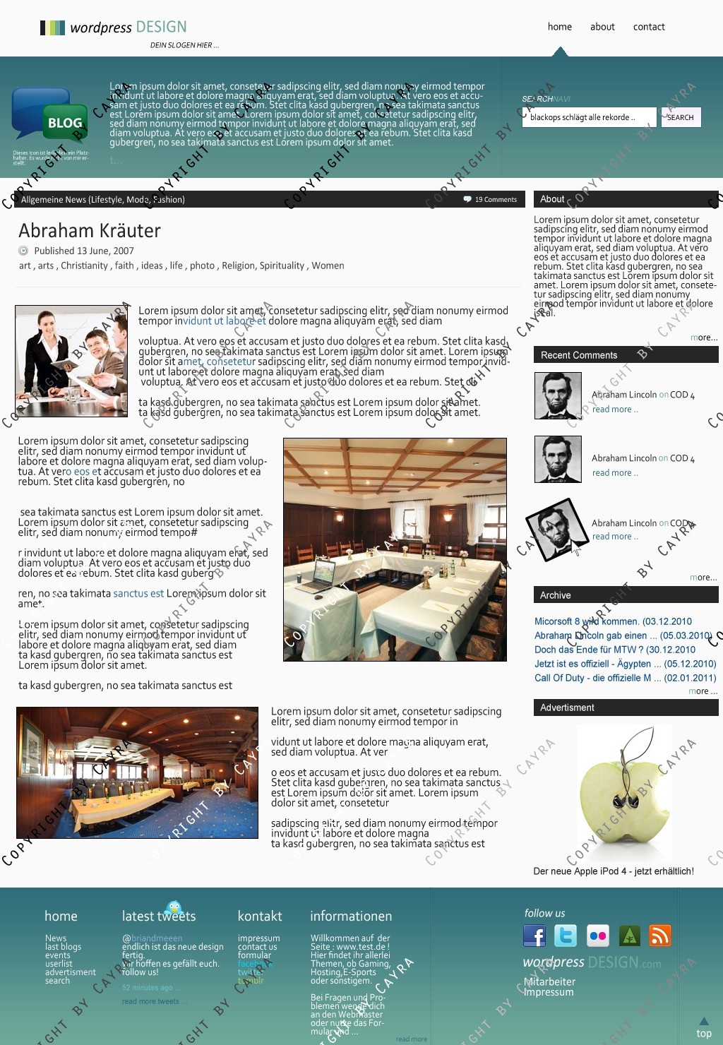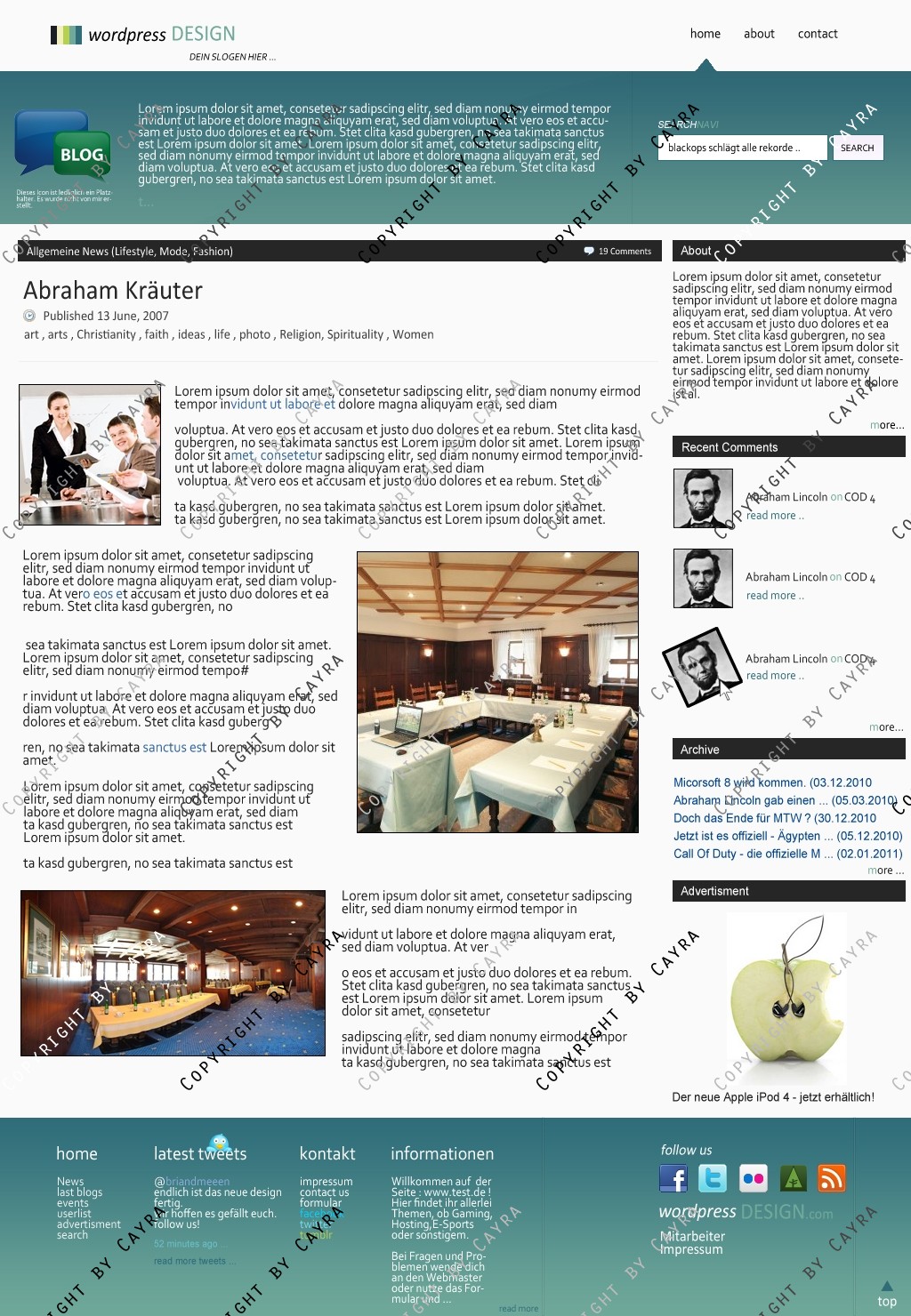 zum Verkauf steht einanschauliches und sauberes WORDPRESS Design. Was Wordpress ist, verrät Google.