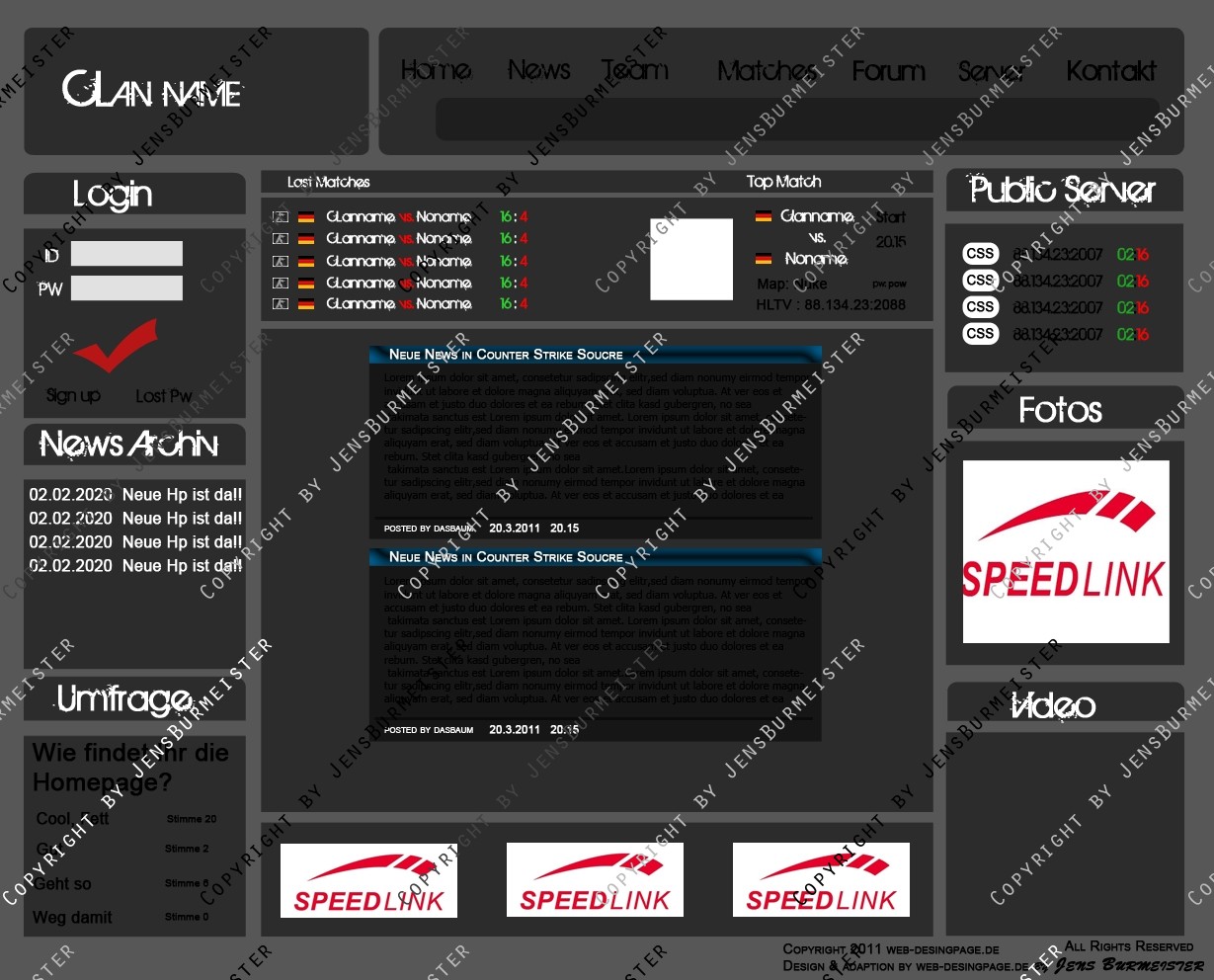 Du hast noch keinen Account auf ClanDesigns.de? Dann kannst du dich hier kostenlos registrieren!
