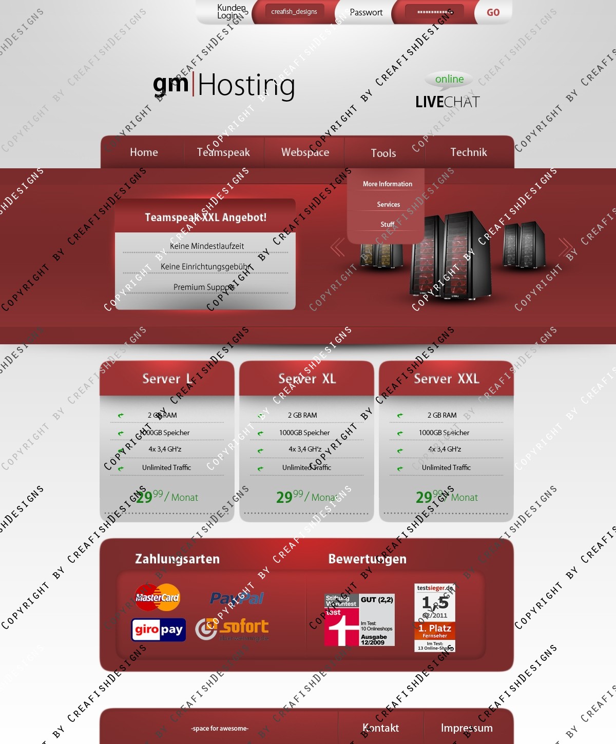 Hinweis: Hierbei handelt es sich nur um das Design, eine Anpassung an ein CMS-System ist nicht im Preis enthalten!