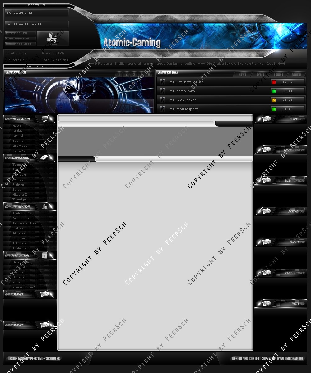Was Sie hier kaufen ist lediglich die PSD Datei, gerne kann ich es Ihnen gegen einen Aufpreis von 13€ an ein CMS Anpassen, zur Auswahl stehen hierbei: webSPELL, Clansphere, Teklab, Devilz und andere CMS auf Anfrage ohne Aufpreis.