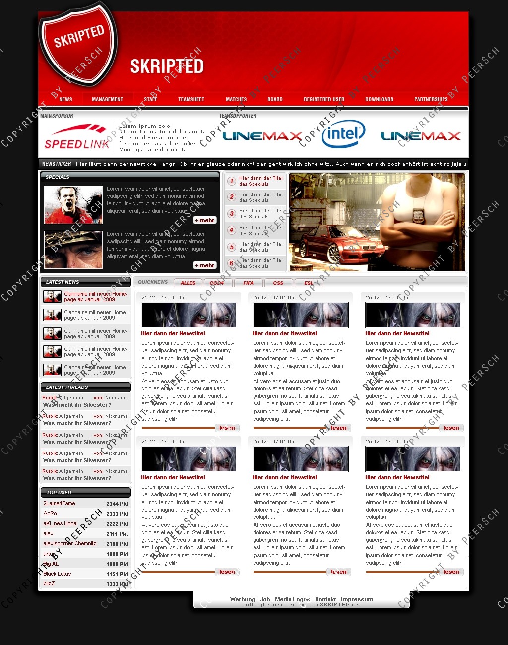 Was Sie hier kaufen ist lediglich die PSD Datei, gerne kann ich es Ihnen gegen einen Aufpreis von 13€ an ein CMS Anpassen, zur Auswahl stehen hierbei: webSPELL, Clansphere, Teklab, Devilz und andere CMS auf Anfrage ohne Aufpreis.
