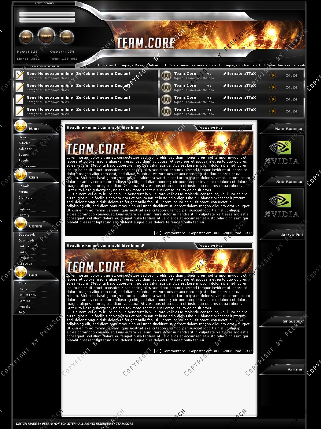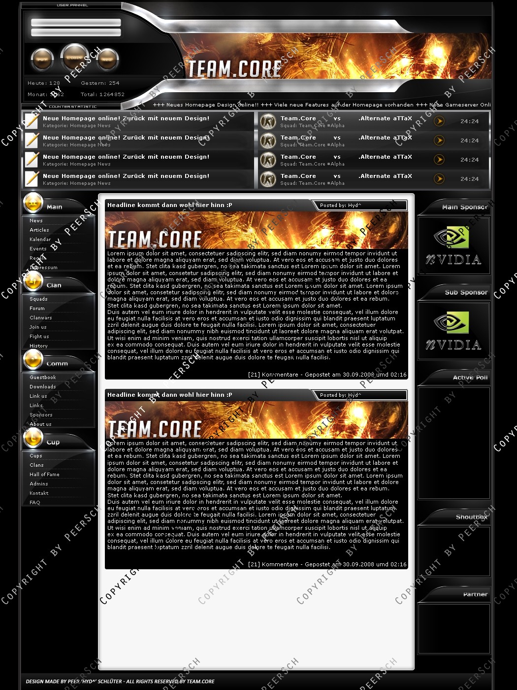 Was Sie hier kaufen ist lediglich die PSD Datei, gerne kann ich es Ihnen gegen einen Aufpreis von 13€ an ein CMS Anpassen, zur Auswahl stehen hierbei: webSPELL, Clansphere, Teklab, Devilz und andere CMS auf Anfrage ohne Aufpreis.