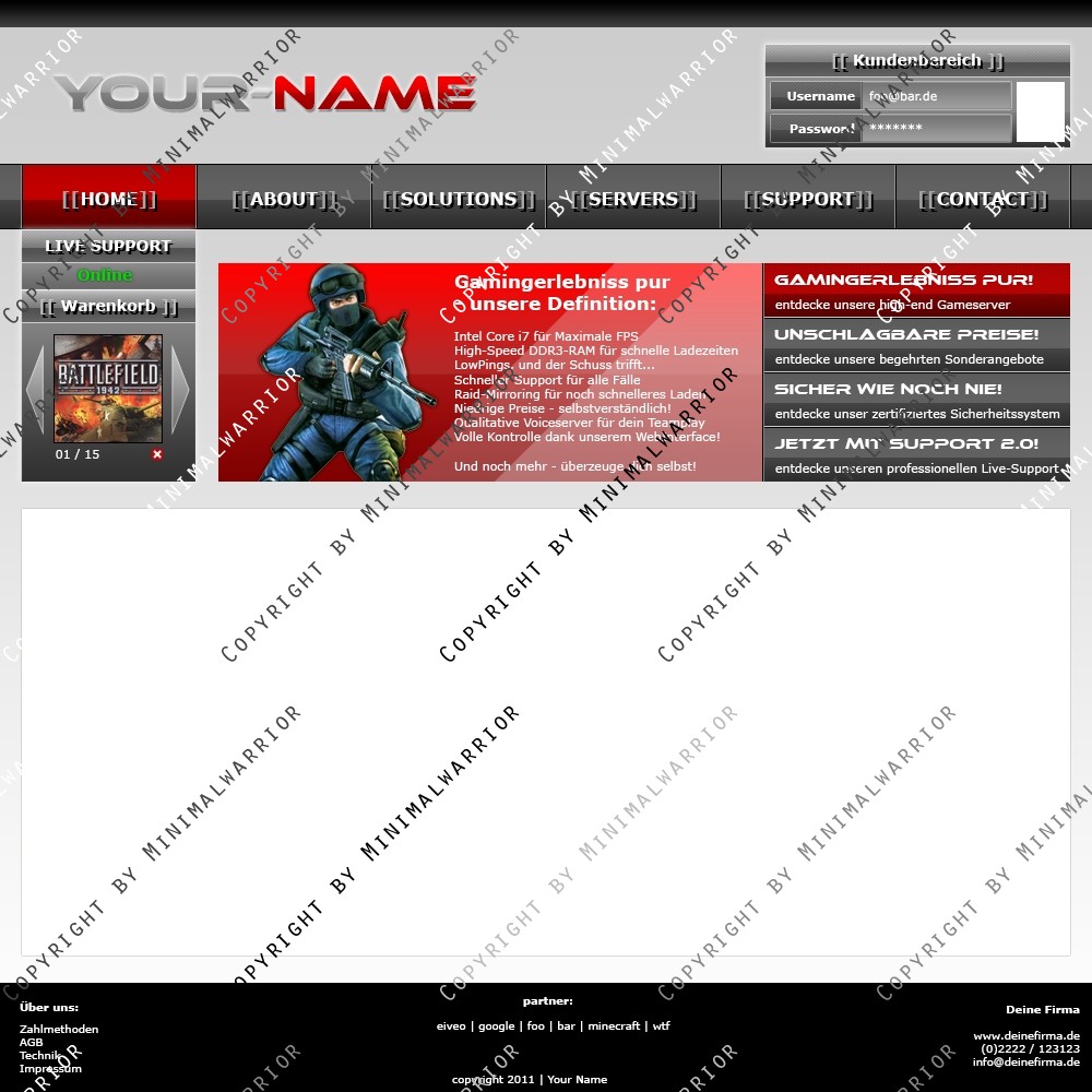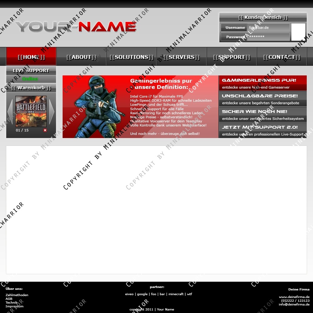 Sei der Erste und kaufe dir das Template Exklusiv um sicher zu gehen, das einzig und allein dein Hosting dieses Top-Design benutzt. Denn anhand des Designs kann man schon die Qualität des Hostings erkennen.