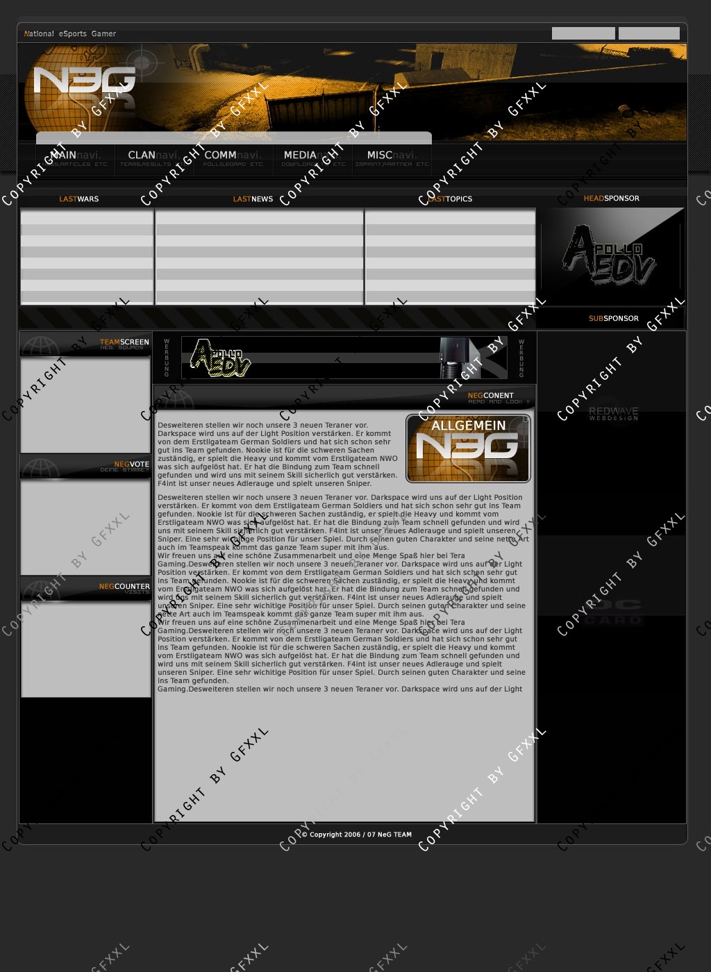 Ich stelle hiermit mein "altes" Clandesign zum Verkauf ein, er war ursprünglich für Natinal-eSports Gamer gedacht, aber aus dem Auftrag is nix geworden... deshalb hier und jetzt zuhaben!