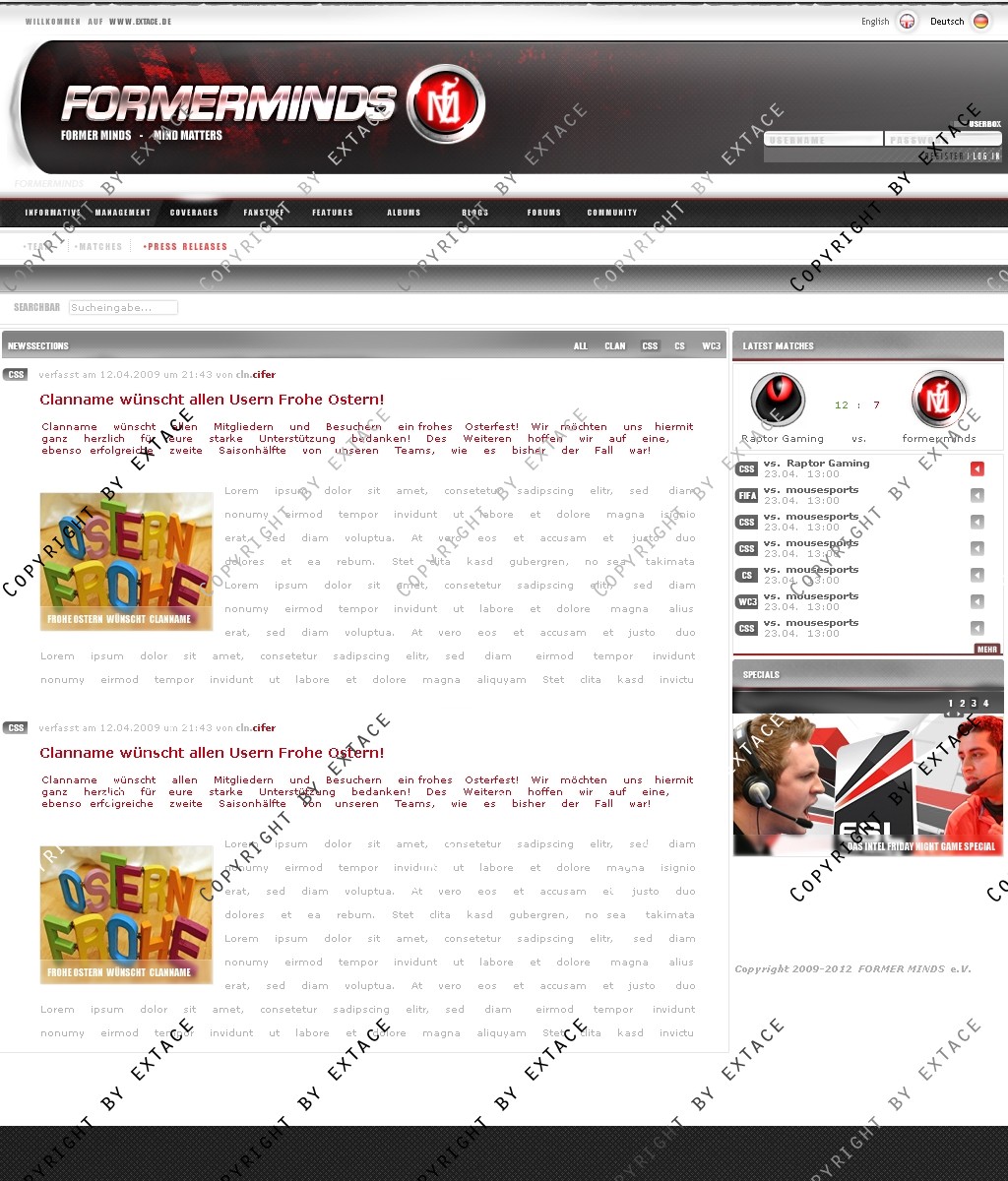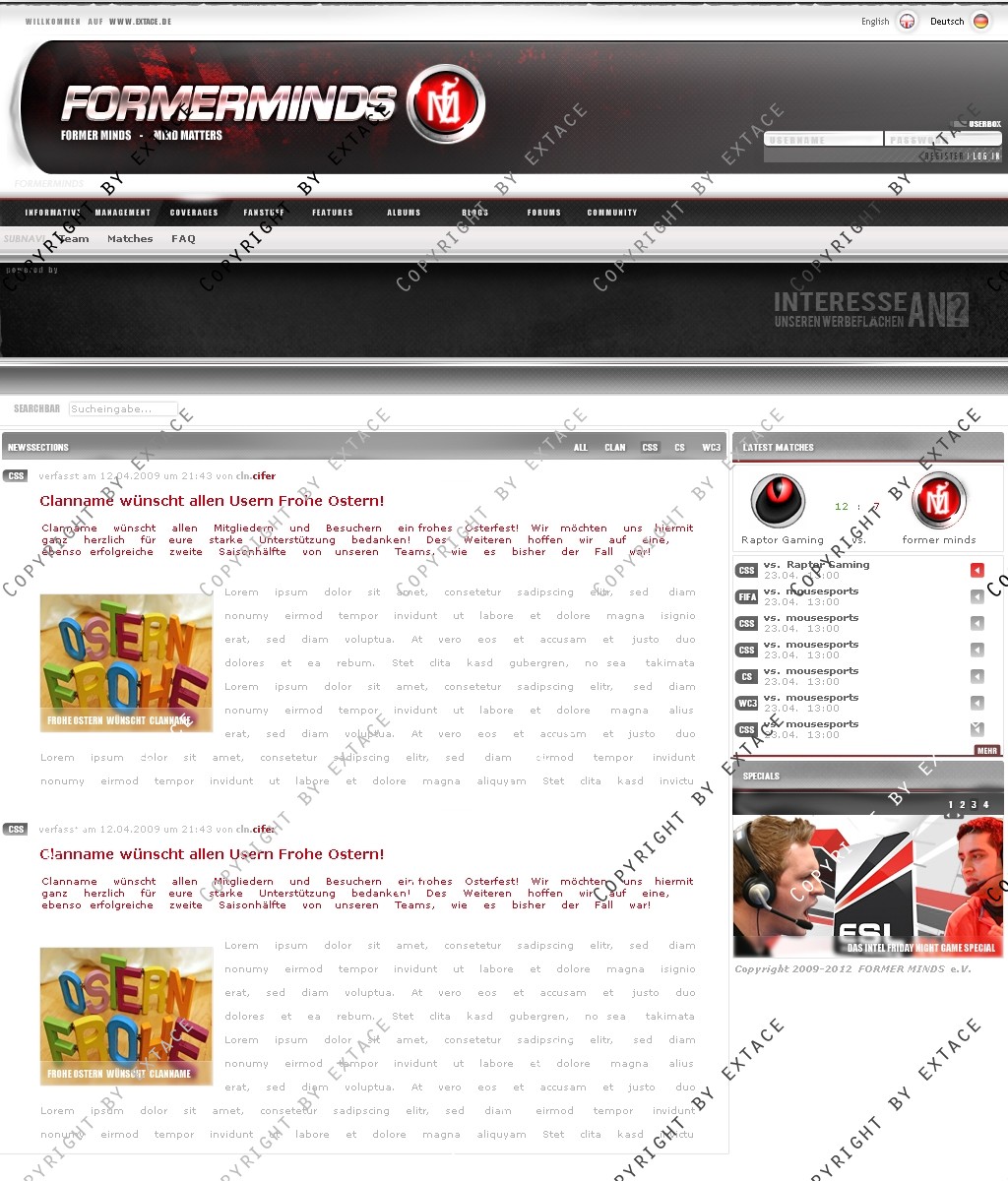 • Anpassung der Homeapage an ein CMS (webSPELL o.ä.) möglich (Zusatzkosten je nach Umfang - nur nach Absrpache)