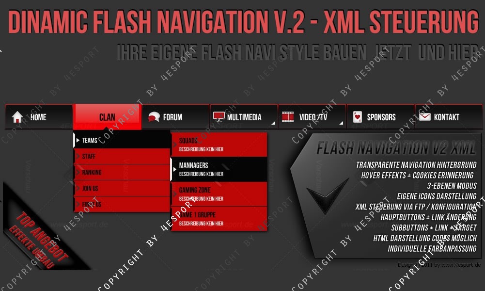 • Flash Animation (Buttons, Sub buttons, Hover Effekte)