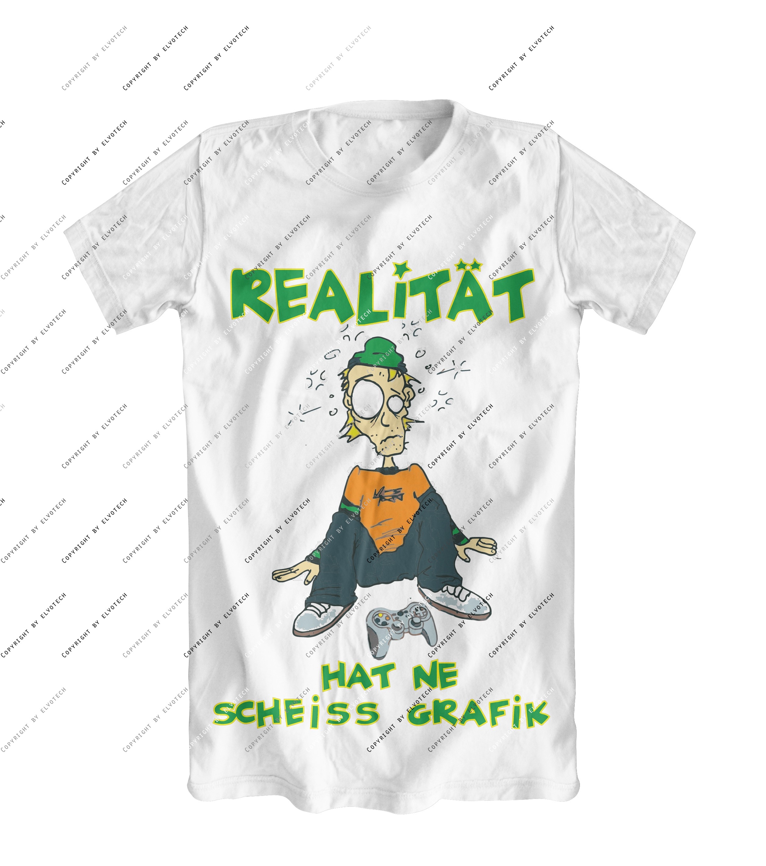 Ihr erhaltet ein T-Shirt in Weiss mit dem Druckbild wie in der Vorschau zu sehen.