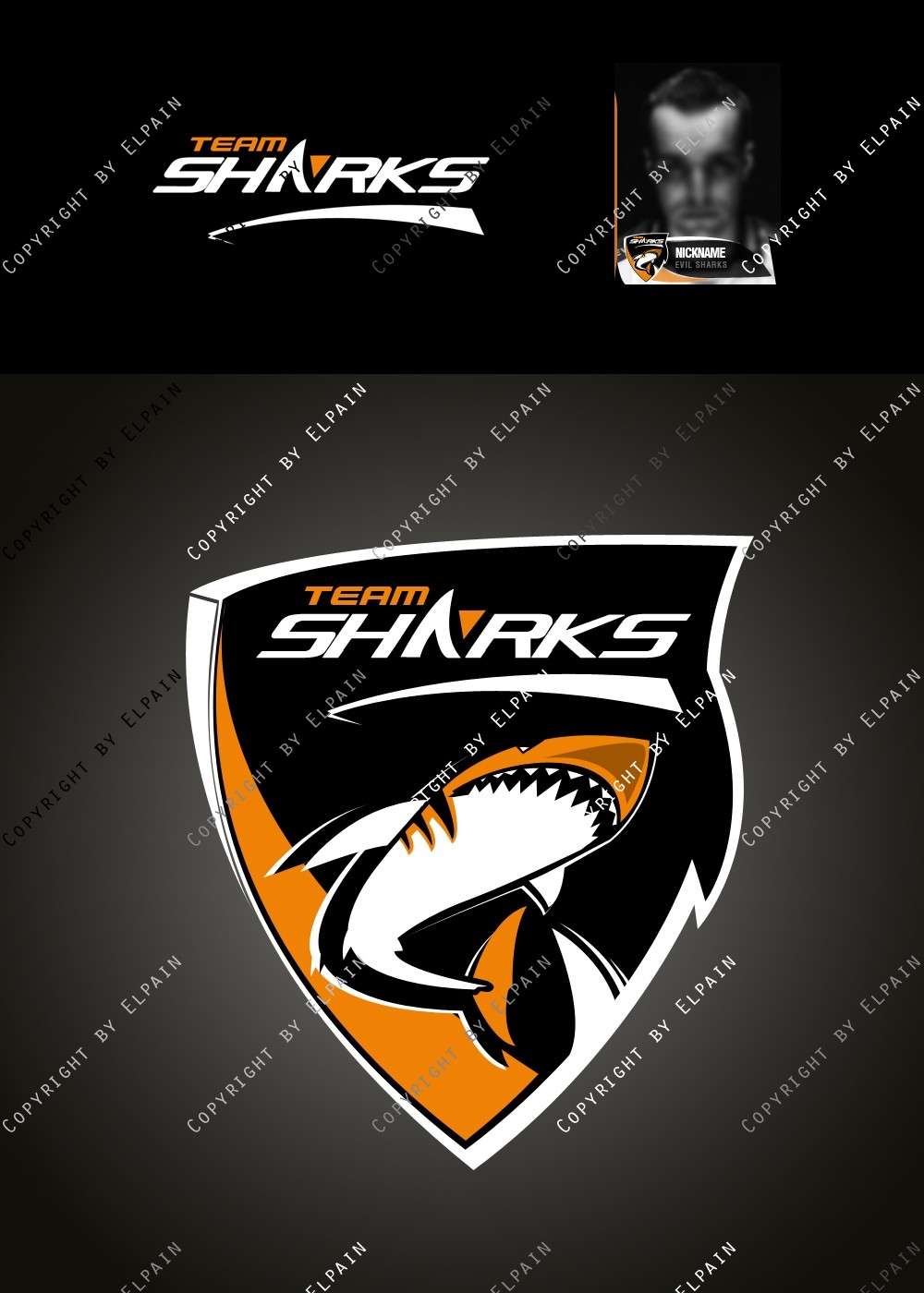 - Die .PSD Datei beinhaltet ALLE Ebenen als Formen, den original Team-Shark Schriftzug und eine kinderleichte Vorlage für den eigenen Clannamen. (Schriftarten liegen bei. S.o.)