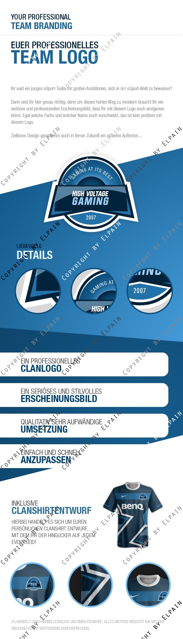 Dann könnte EUCH dieses Logopaket gefallen, denn Ihr kauft hier nicht nur ein einzelnes Produkt, sondern ein Logo, einen passenden Spielerrahmen sowie einen Entwurf für eigene, individuelle Clanshirt.