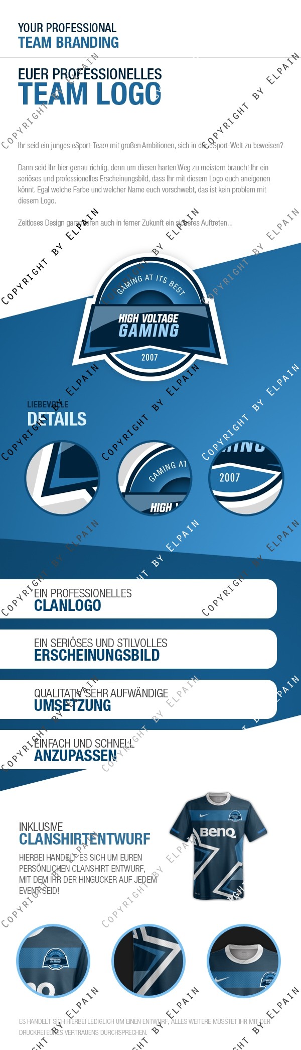Dann könnte EUCH dieses Logopaket gefallen, denn Ihr kauft hier nicht nur ein einzelnes Produkt, sondern ein Logo, einen passenden Spielerrahmen sowie einen Entwurf für eigene, individuelle Clanshirt.