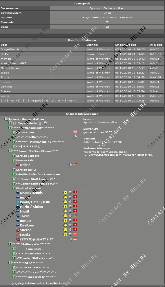 Ich biete den MOD nicht Hauptsächlich unter meinem Namen an, da der Viewer also das Grundscript von Psychokiller ist, der auch das einzige im mom geupdatede Teamspeak Webinterface codet.