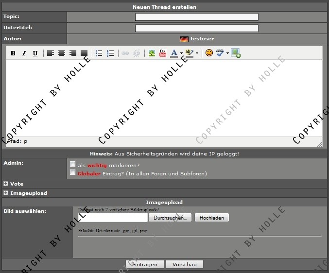 + ...können direkt Bilder im Forum während des Thread oder Post erstellens uploaden