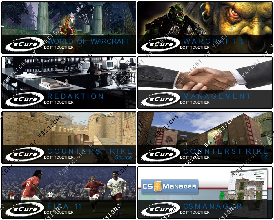 8 Banner aus den Bereichen: