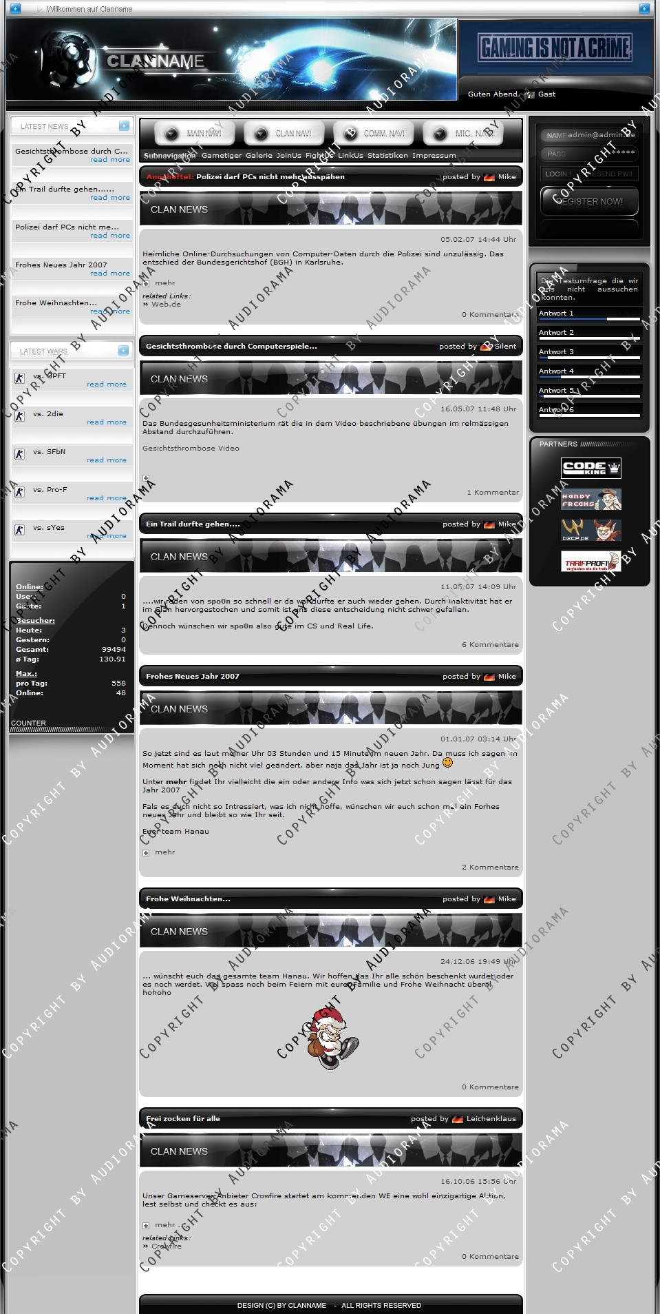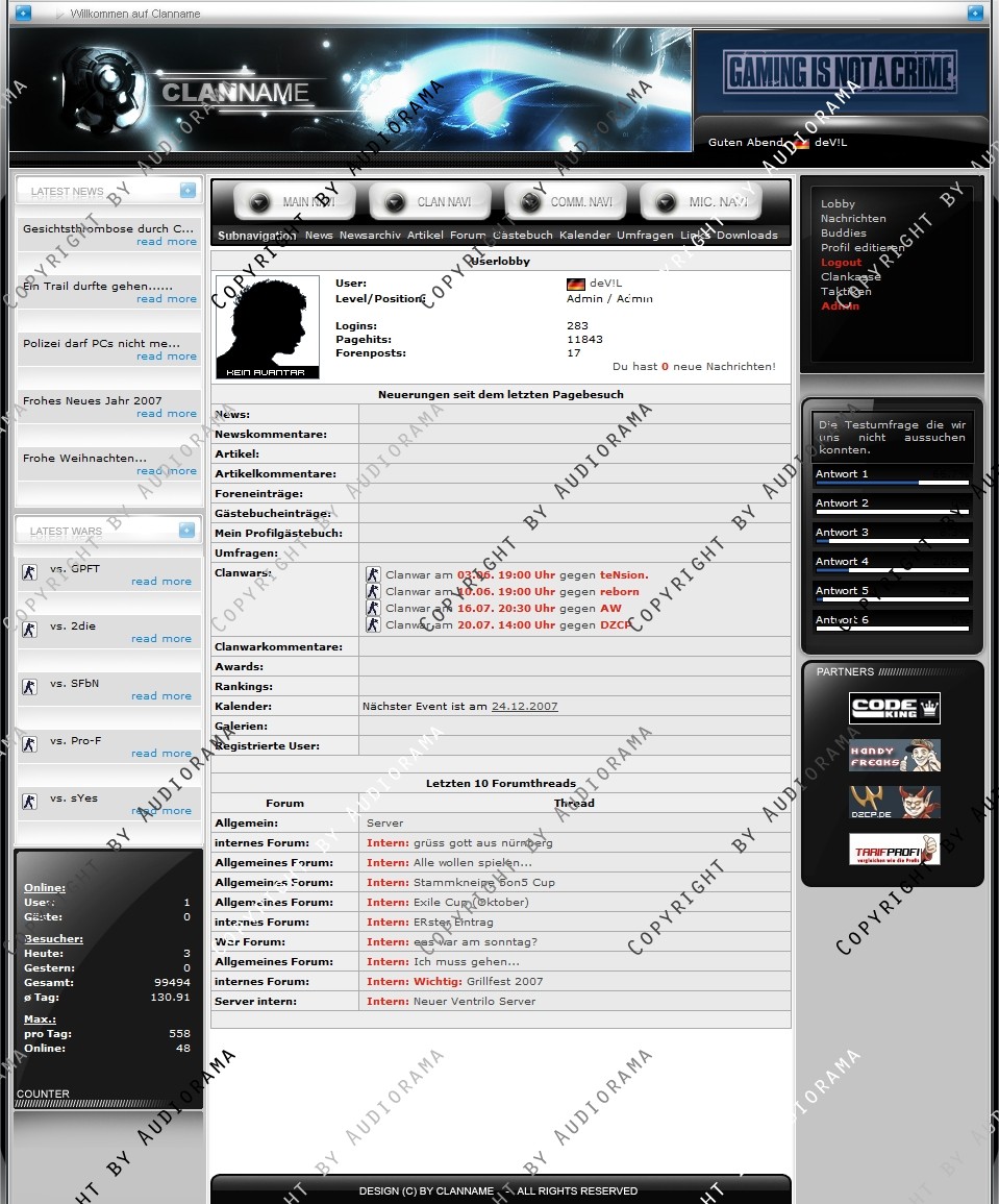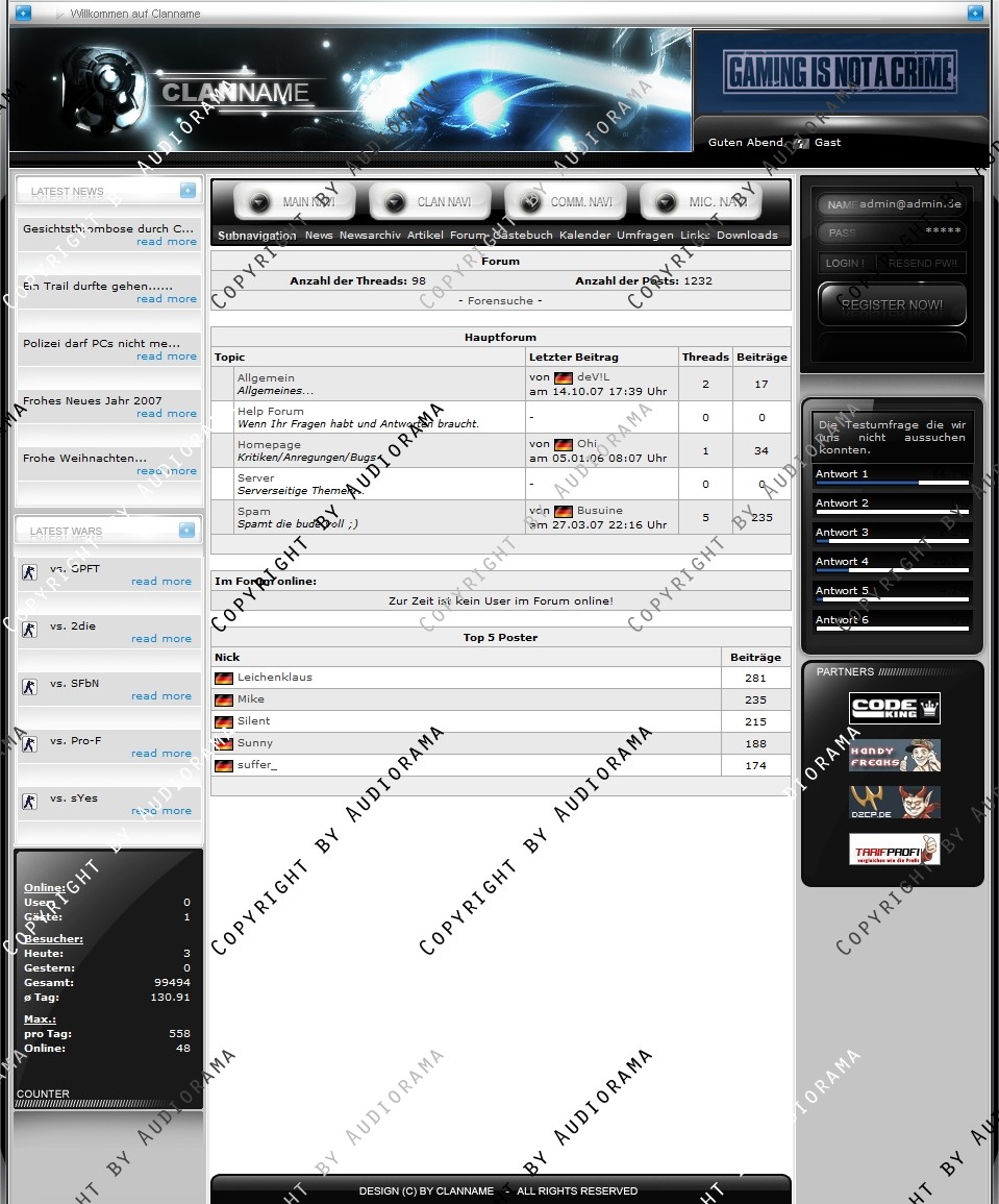 Du hast noch keinen Account auf ClanDesigns.de? Dann kannst du dich hier kostenlos registrieren!