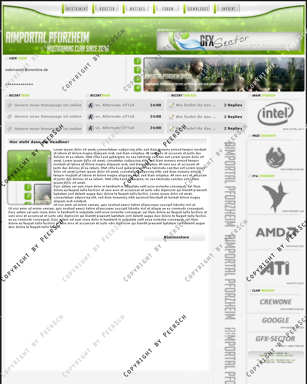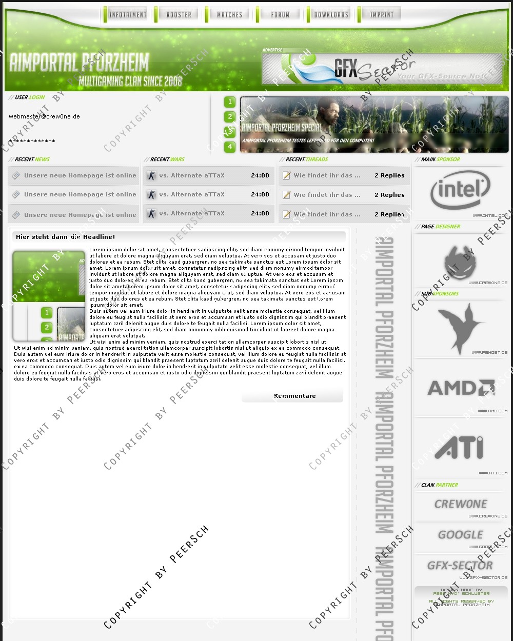 Dieses Template ist angepasst auf eine etwas ältere Version des webSPELL CMS. Bei Fragen oder ähnlichem melden Sie sich doch bitte per Email bei mir; [email protected].