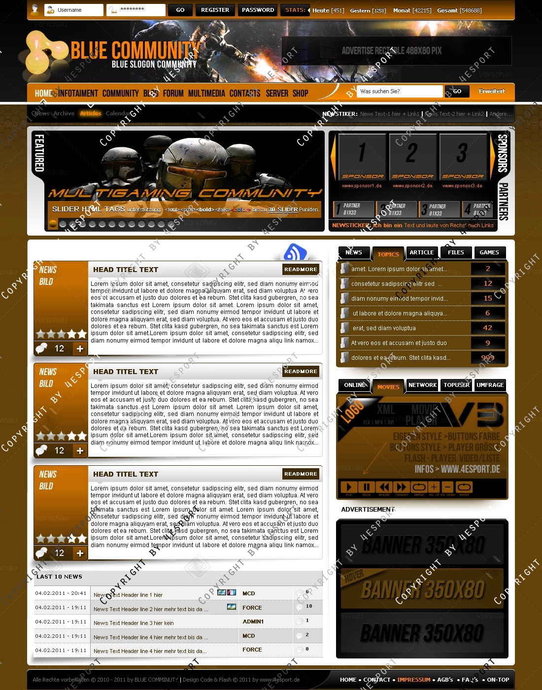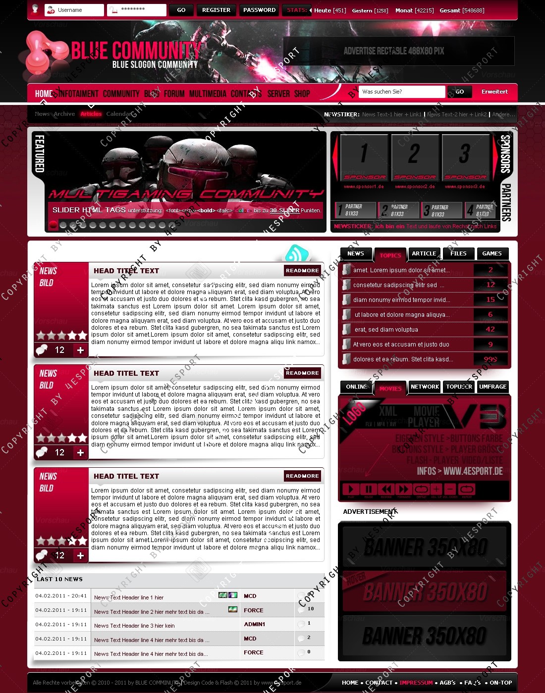 Blue Community Templates Premium edition mit Flash Player 1 V3 Custom Edition und Featured System, CMS Erweiterung Webspell 4.2.2a, wird auf wunsch auf ClanWORLD v1.1 auch gecodet.