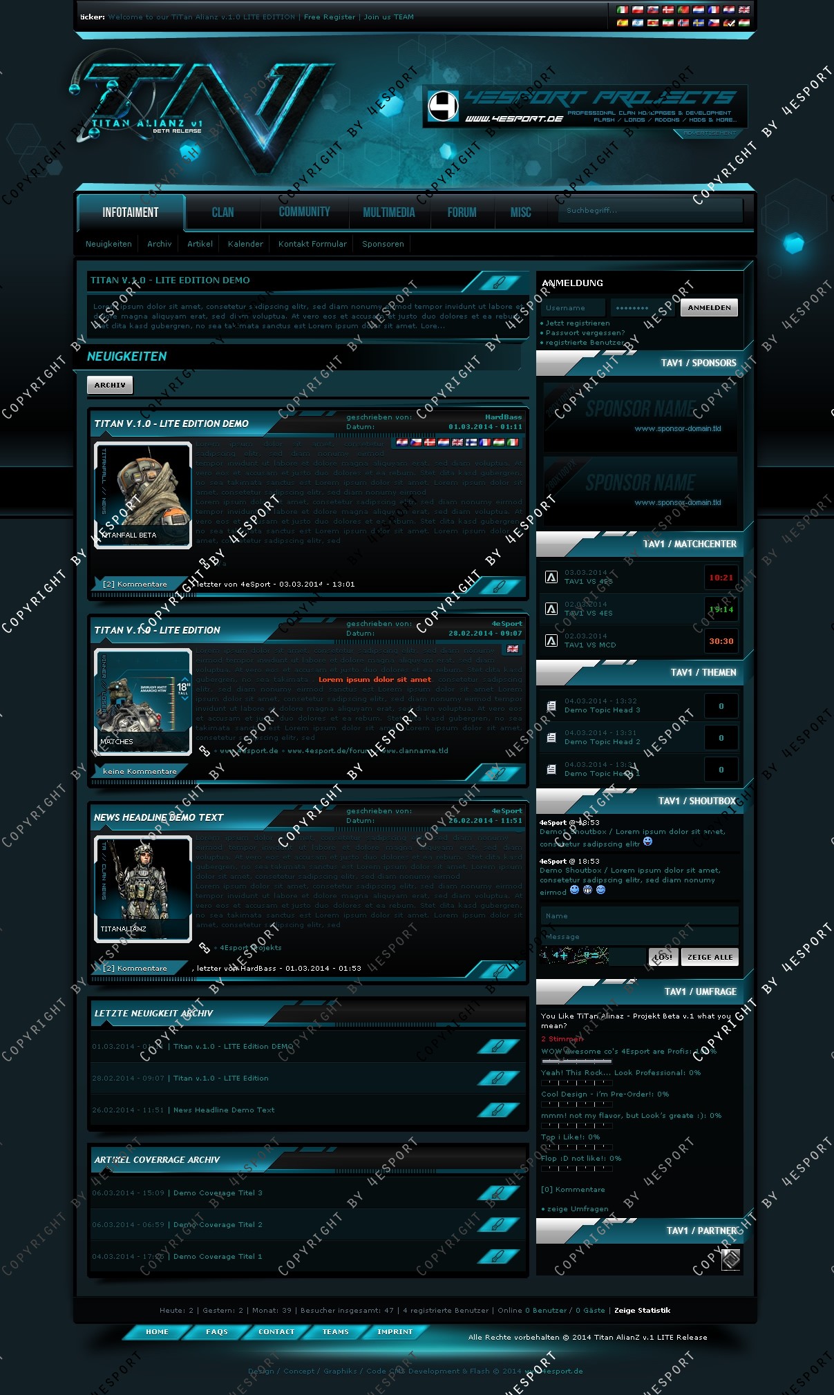 Sie erhalten hier eine Komplette CLAN Template an WEBSPELL 4.2.3a CLAN EDITION an TITANFALL Game angepasst.