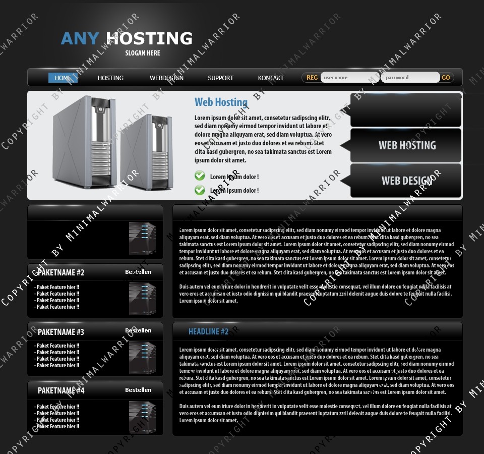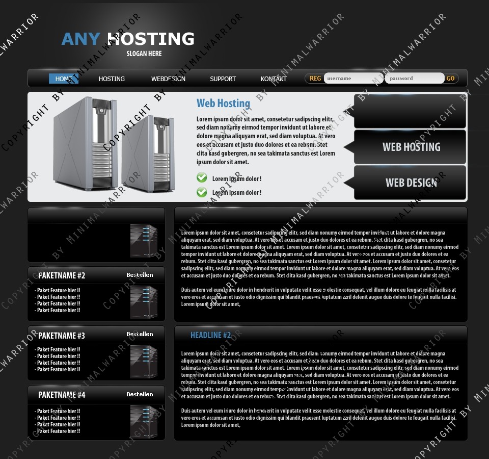 Sei der Erste und kaufe dir das Template Exklusiv um sicher zu gehen, das einzig und allein dein Hosting/Sponsoring dieses Top-Design benutzt. Denn anhand des Designs kann man schon die Qualität des Hosting/Sponsorings erkennen.