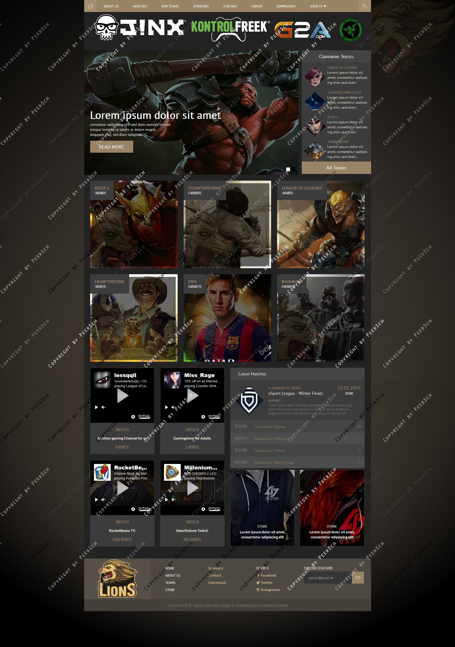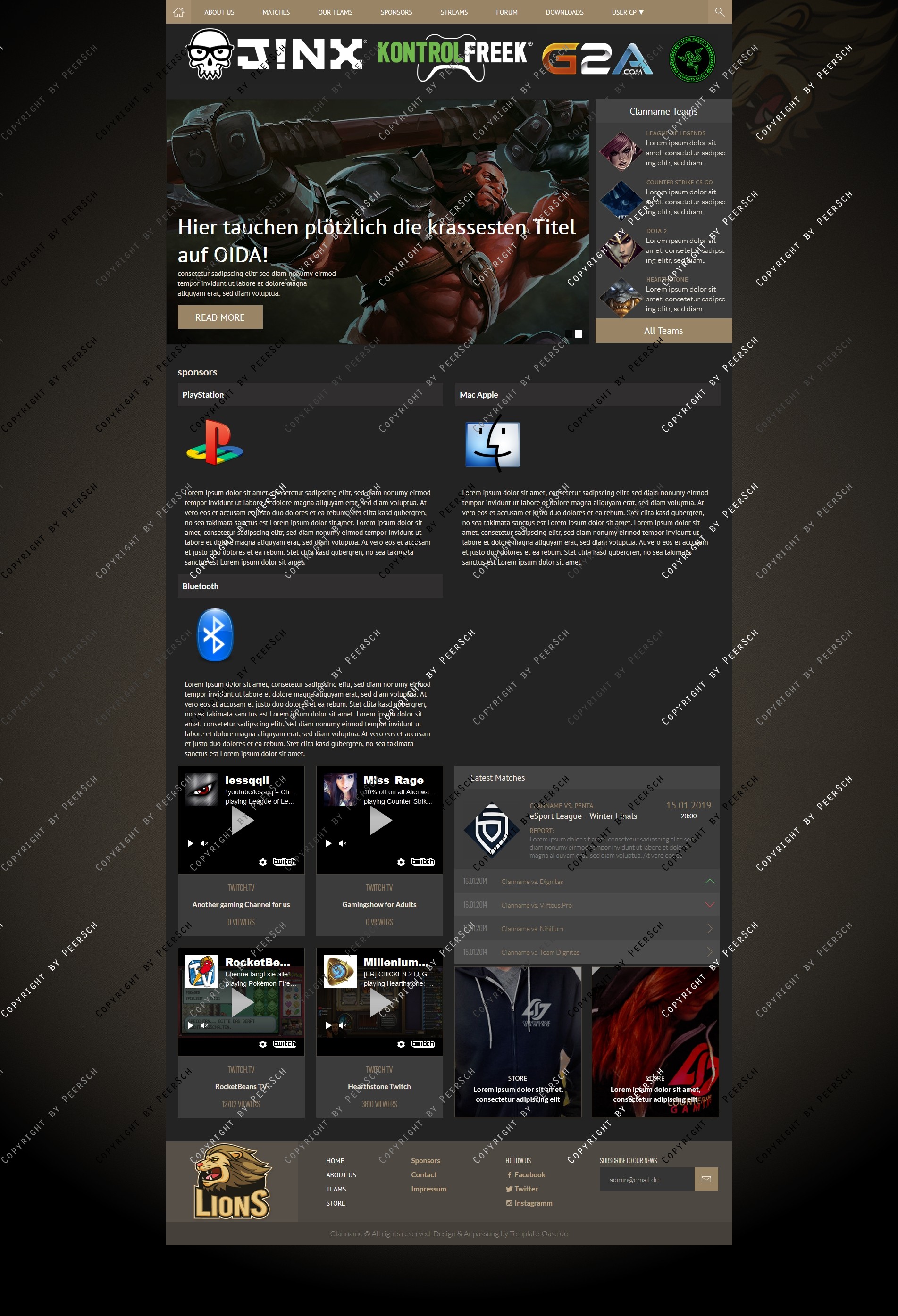 Im Preis mit inbegriffen sind außerdem die angepassten Unterseiten: Sponsoren, Squads, Squaddetail, News, Newscomments, Profil und Streams!